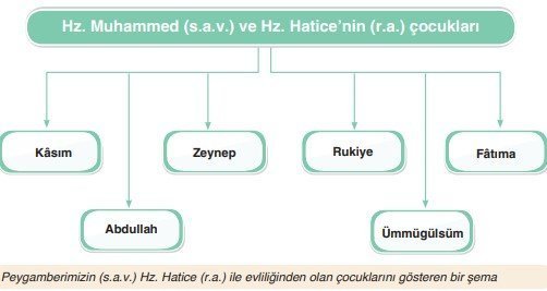 Hz. Muhammed’in (s.a.v.), Hz. Hatice (r.a.) ile evliliğinden altı çocuğu olmuştur. Bunlar; Abdullah, Kâsım, Zeynep,